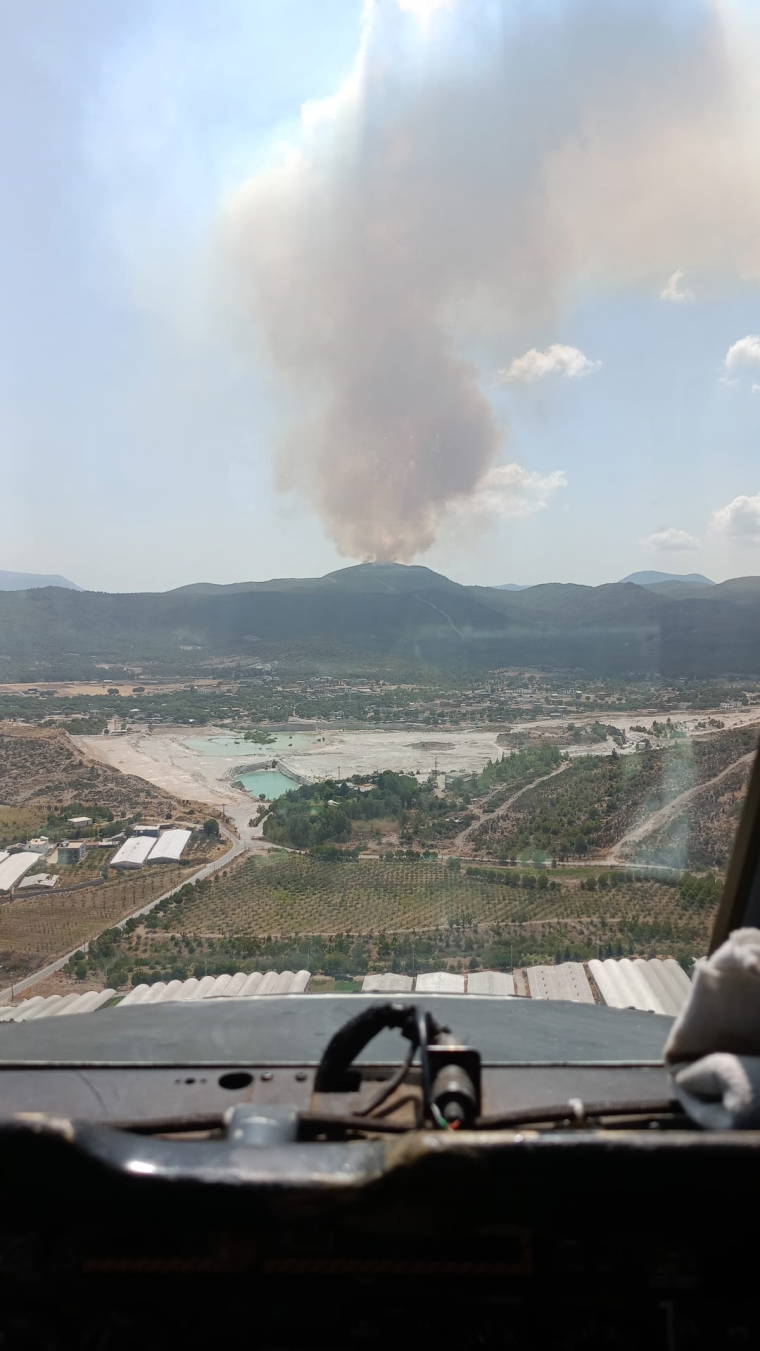 Bölgeye İzmir Orman Bölge Müdürlüğüne ait 3 uçak, 8 helikopter, 29 arazöz, 10 su ikmal aracı, 5 dozer ve 5 yer ekibi sevk edildi.