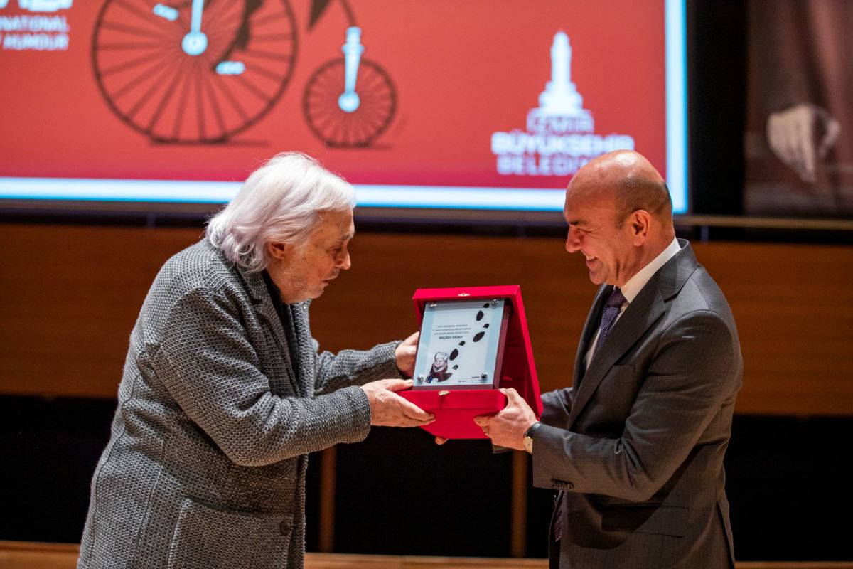 İzmir Büyükşehir Belediye Başkanı Tunç Soyer’in İzmir’i kültür sanat kenti haline getirme vizyonu doğrultusunda bu yıl beşincisi düzenlenen İzmir Uluslararası Mizah Festivali kapsamında, tiyatro ve sinemanın duayen sanatçısı Müjdat Gezen’e, Aziz Nesin’in adını taşıyan onur ödülü verildi. Ahmed Adnan Saygun Sanat Merkezi’ndeki programa, İzmir Büyükşehir Belediye Başkanı Tunç Soyer, Karşıyaka Belediye Başkanı Cemil Tugay, sanatçı Müjdat Gezen ve davetliler katıldı. Programda, sanat yaşamının 61. yılını dolduran Müjdat Gezen’in hayatını anlatan belgeselin gösterimi yapıldı. Gazeteci Gökmen Ulu tarafından hazırlanan 95 dakikalık belgesel filmde, Müjdat Gezen’in meslek yaşamının yanı sıra bilinmeyen yönleri anlatıldı. Hem güldüren hem de hüzünlendiren belgesel gösteriminin ardından Başkan Tunç Soyer, M&uu ml;jdat Gezen’e ödülünü verdi.