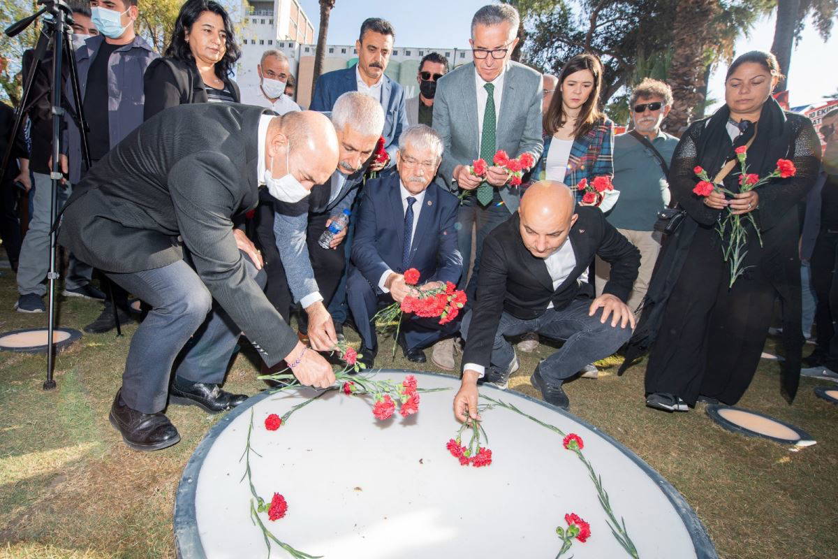 Törene İzmir Büyükşehir Belediye Başkanı Tunç Soyer, İzmir Büyükşehir Belediye Başkan Vekili Mustafa Özuslu, CHP Parti Meclisi Üyesi Rifat Nalbantoğlu, CHP İzmir Milletvekillerinden Kani Beko ile Mahir Polat, Konak Belediye Başkanı Abdül Batur, Karşıyaka Belediye Başkanı Cemil Tugay, Bornova Belediye Başkanı Mustafa İduğ, Balçova Belediye Başkanı Fatma Çalkaya, Gaziemir Belediye Başkanı Halil Arda, Selçuk Belediye Başkanı Filiz Ceritoğlu Sengel, Dikili Belediye Başkanı Adil Kırgöz, Kemalpaşa Belediye Başkanı Rıdvan Karakayalı, sendika temsilcileri, sivil toplum örgütleri ile katledilenlerin yakınları katıldı.
