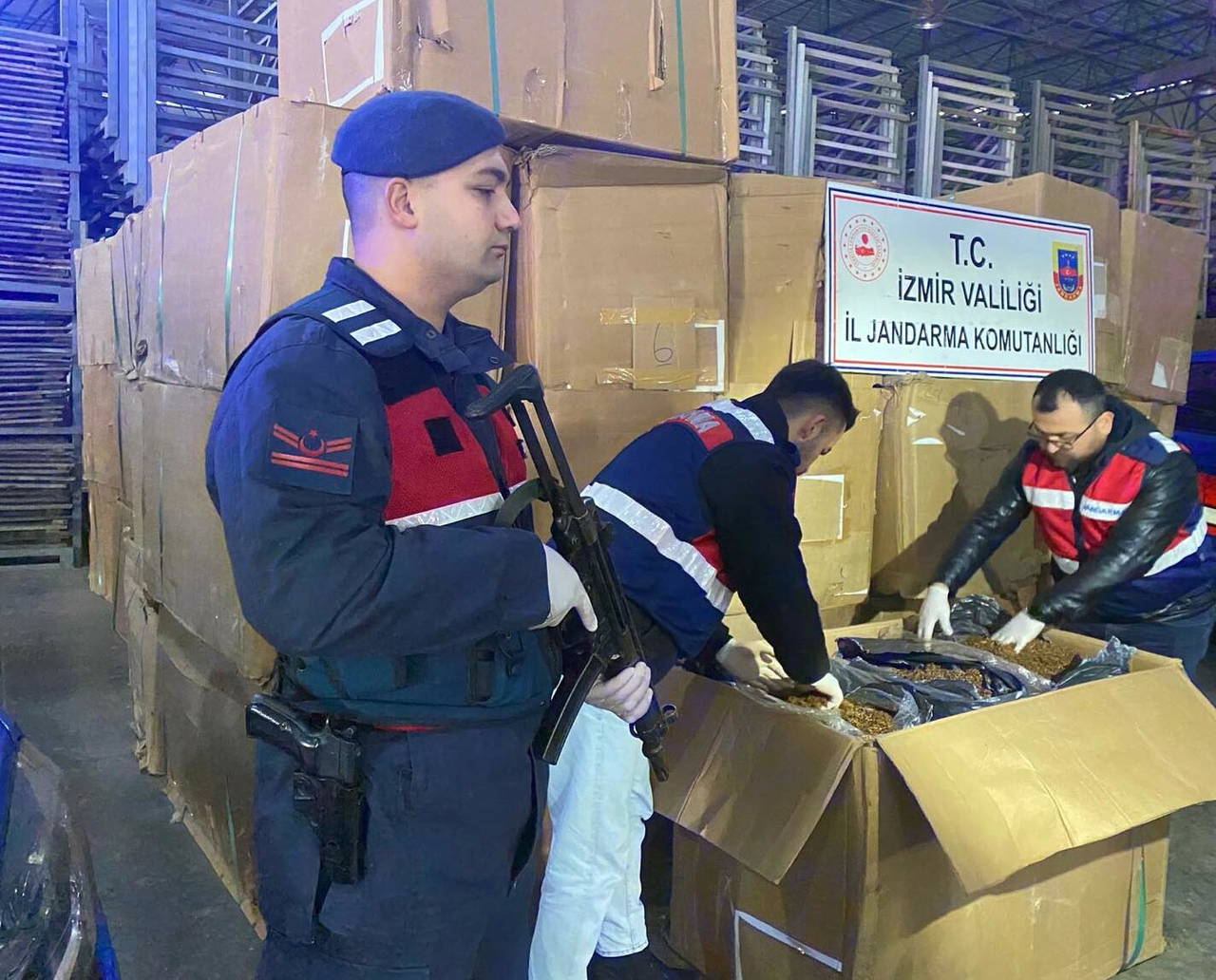 İl Jandarma Komutanlığı Kaçakçılık ve Organize Suçlarla Mücadele Şube Müdürlüğü ve Kemalpaşa Jandarma Komutanlığı ekipleri, ilçeye bağlı Nazarköy Mahallesi'ndeki M.K.Ö. ve H.G.'ye ait eski tütün fabrikasında kaçak tütün bulunduğu bilgisi üzerine harekete geçti.