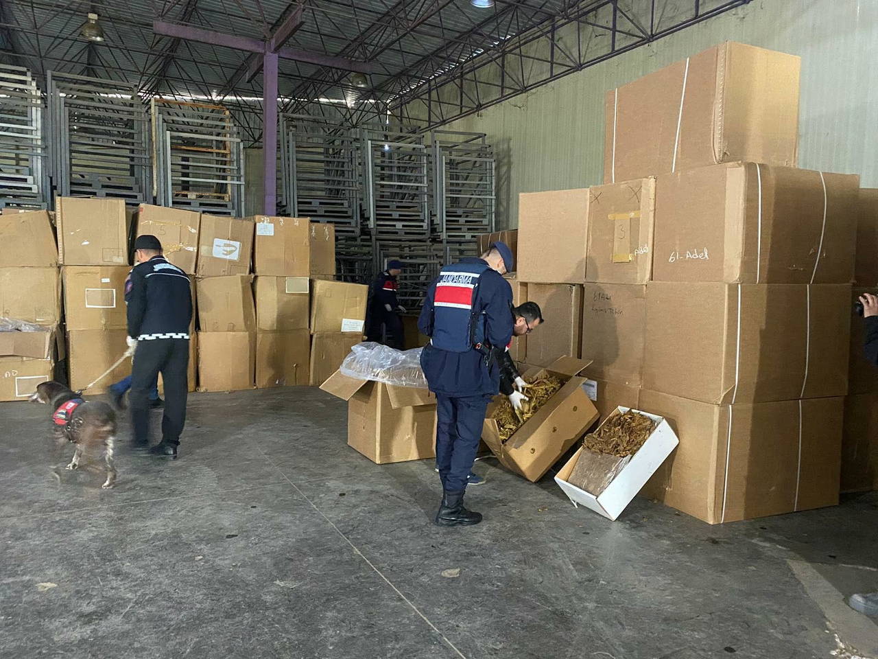 Teknik ve fiziki takibin ardından depoya düzenlenen operasyonda, 39 ton 601 kilo kaçak tütün ele geçirildi.