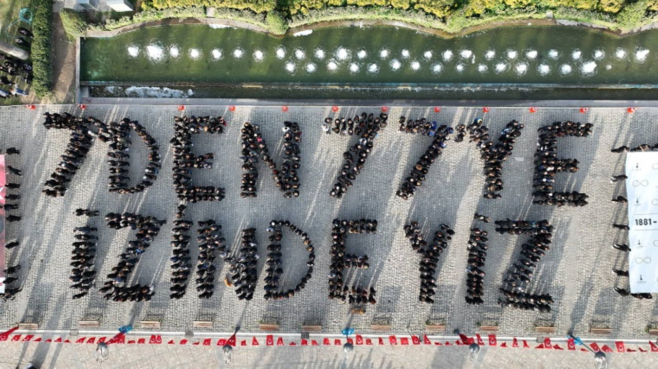 İzmir Büyükşehir Belediyesi, ulu önder Mustafa Kemal Atatürk’ün ölümünün 85’inci yıldönümünde saatler 9.05’i gösterirken belediye çalışanlarının yer aldığı etkileyici bir görsel etkinliğe imza attı. Konak Atatürk Meydanı’nda 1881 kişi “7’den 77’ye İzindeyiz” yazısı ve 9’u 5 geçe duran saat figürü oluşturuldu.