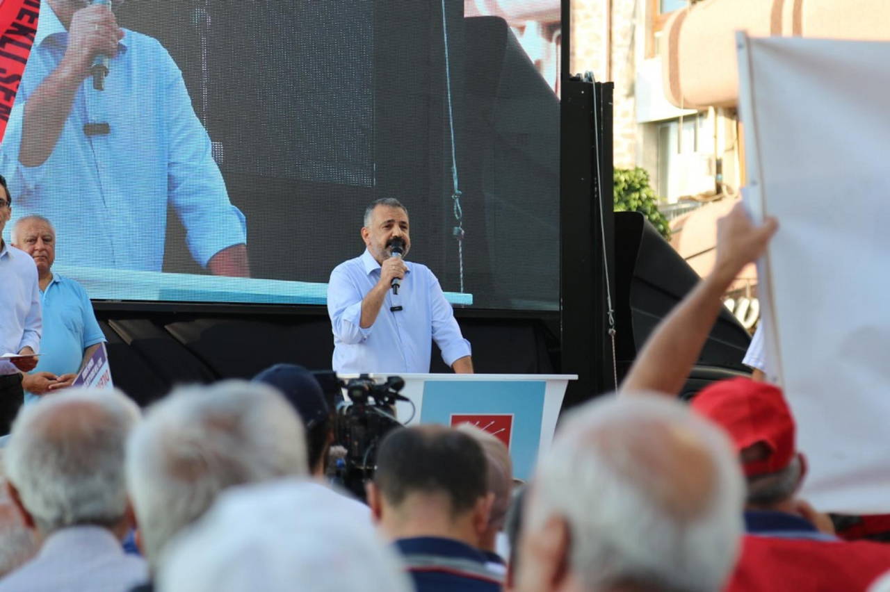 Mitingin açılış konuşmasını CHP İzmir İl Başkanı Şenol Aslanoğlu yaptı.