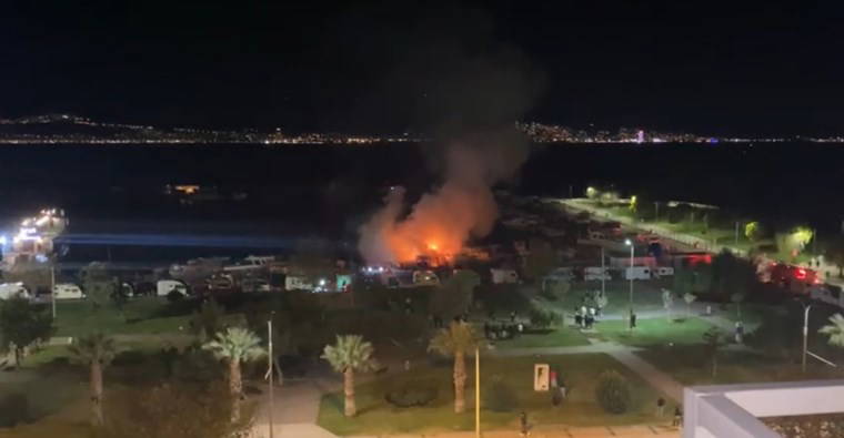 Yangın, saat 21.00 sıralarında Karşıyaka ilçesi Bostanlı Balıkçı Barınağı'nda meydana geldi.