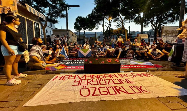 AKP’nin TBMM Başkanlığı’na sunduğu sokak hayvanlarıyla ilgili yasa teklifine karşı İzmir'de başlatılan protesto eylemleri üçüncü gününde de devam etti. Hayvanseverler akşam saatlerinde Alsancak Kıbrıs Şehitleri Caddesi ÖSYM binası önünde toplanarak oturma eylemi yaptı.