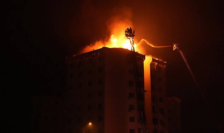 Yangının TOKİ konutlarına sıçraması sonucu 10 katlı bir bloğun çatısı yandı.