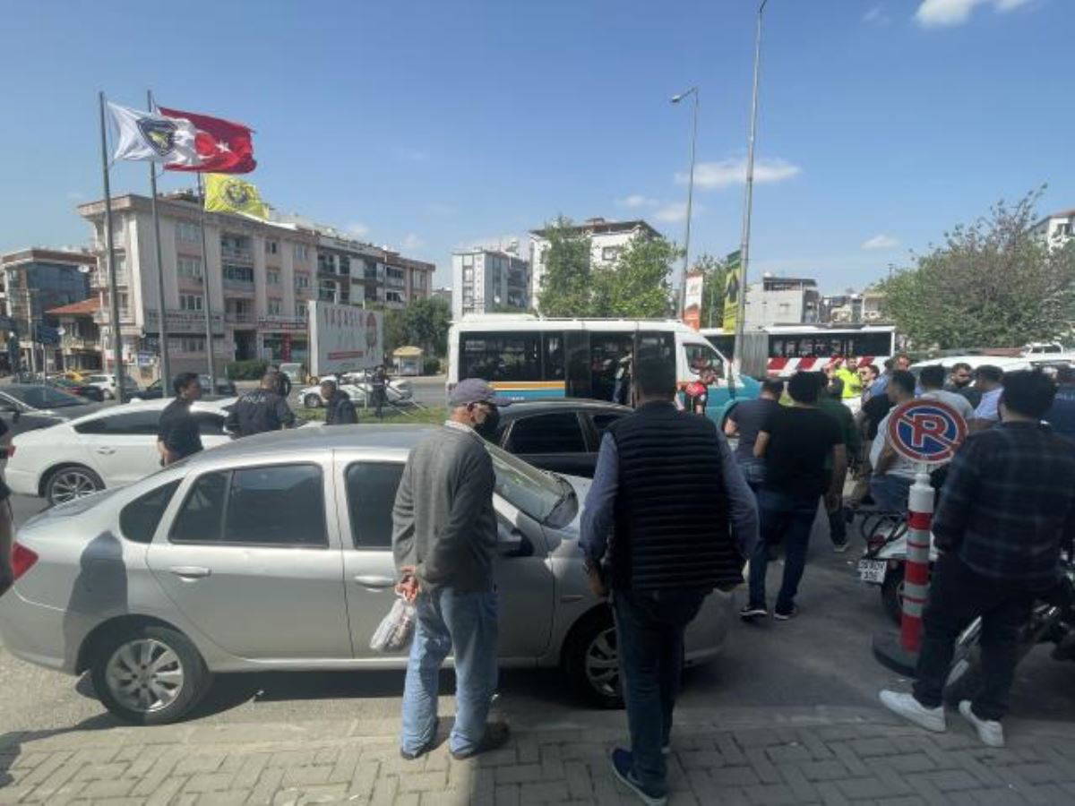 Alınan bilgiye göre, bir sürücü, Mehmet Akif Caddesi'ndeki bir kuaför salonuna getirdiği eşini, yol kenarına park ettiği otomobilde beklemeye başladı. Bu sırada başka bir araç sürücüsü, bina girişini kapattığını öne sürdüğü eşini otomobilinde bekleyen sürücüyle tartışmaya başladı.