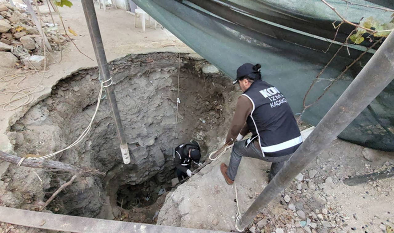 İzmir'de tarihi Kemeraltı Çarşısı ve Agora Ören Yeri'ne yakın, araçların giremediği dar sokaklar arasındaki bir ikametin bahçesinde kaçak kazı yapıldığı bilgisine ulaşan İzmir Emniyet Müdürlüğü Kaçakçılık Suçlarıyla Mücadele Şubesi Kültür ve Tabiat Varlıkları Kaçakçılığı Büro Amirliği ekipleri operasyon başlattı.