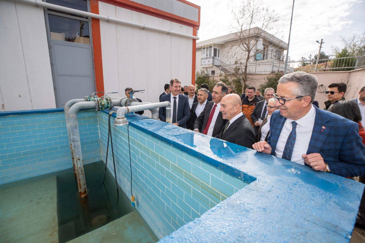 Gaziemir'de 5 tonluk bir su deposunda, sadece binanın çatısında biriken suyu depolayarak yılda 220 ton su tasarrufu sağlandığını ifade eden Başkan Soyer, “İki veya üç yıl içerisinde kendini amorti edecek bir sistem olacak. Bunu tüm İzmir'e tavsiye ediyorum. Yağmur suyunu çatılardan toplamak bile çok ciddi bir tasarruf sağlıyor. Bu suyu hem lavabolarda, hem mutfakta, hem temizlikte kullanmak mümkün. Çok daha fazla yöntem geliştirilebilir. Çok daha fazla çözüm üretilebilir ama bir an önce hayata bu gözle bakmaya başlamamız lazım. Eğer şimdi yapmazsak, yarın çok geç” açıklamasını yaptı.
