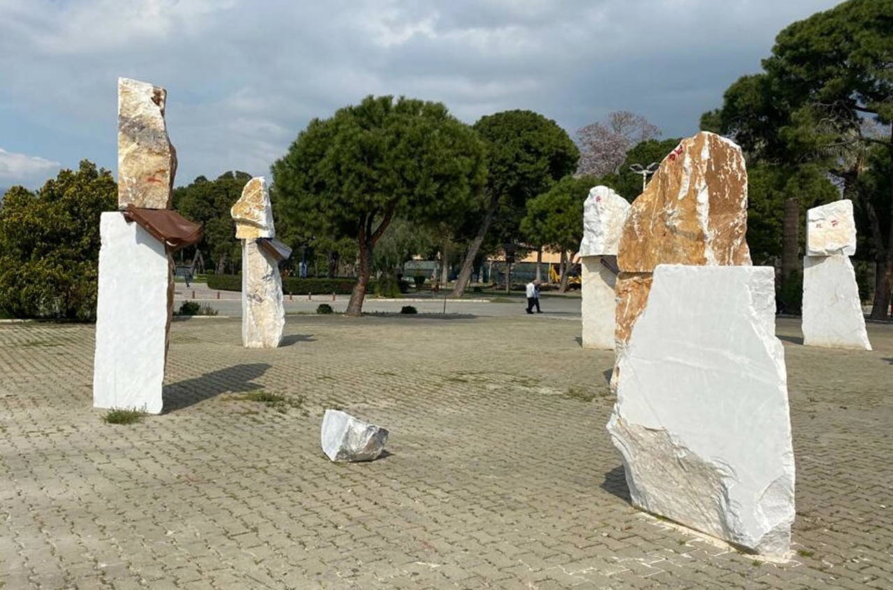 İzmir'de sanatseverlerin yoğun ilgi gösterdiği serginin açık hava bölümündeki eserler ise vandalların hedefi oldu. Mermer blokların arasına sıkıştırılarak sergilenen valizleri almak isteyen kişi ya da kişilerce mermer bloklardan bazıları devrilirken, valizlerden bazıları ise çalındı. Çoğu blokun ise yerinden oynatıldığı görüldü.