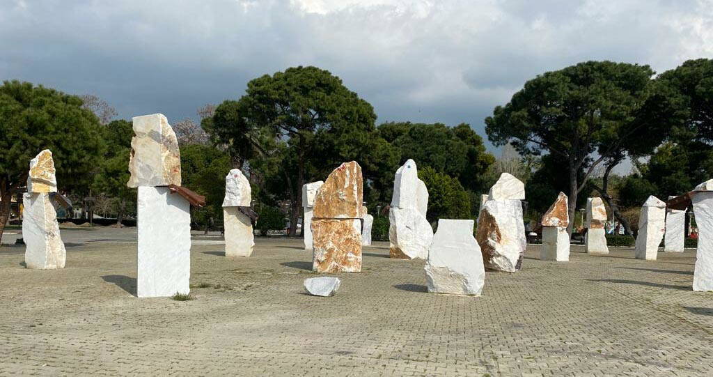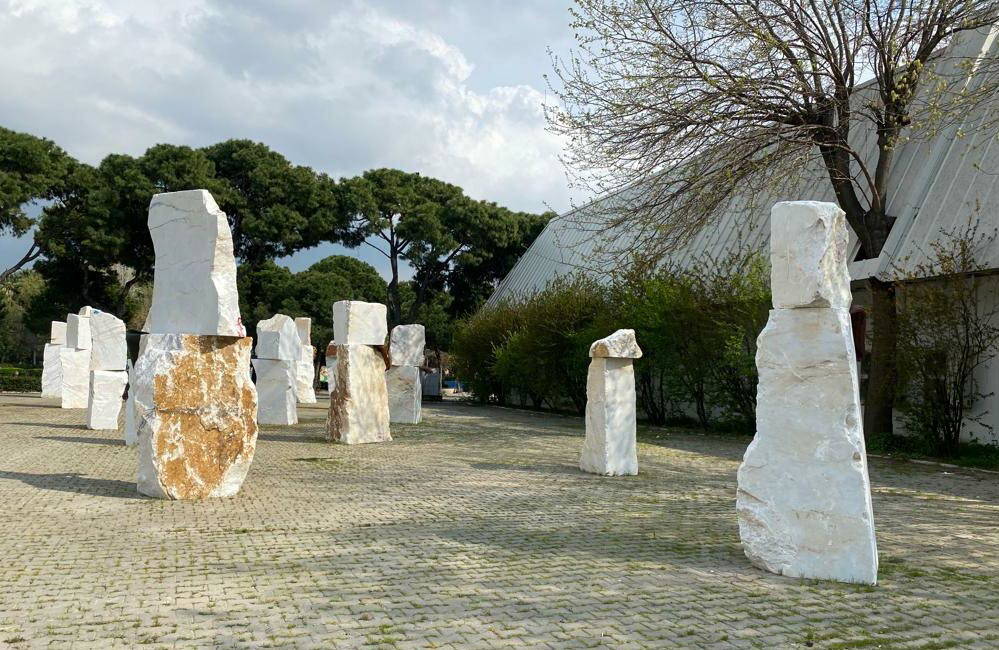 Mübadele ve göç sürecinin anlatıldığı sergide, büyük boyutlu enstalasyonlar, video işleri ve metal formların taşla tamamlandığı heykel çalışmaları sergileniyor.
