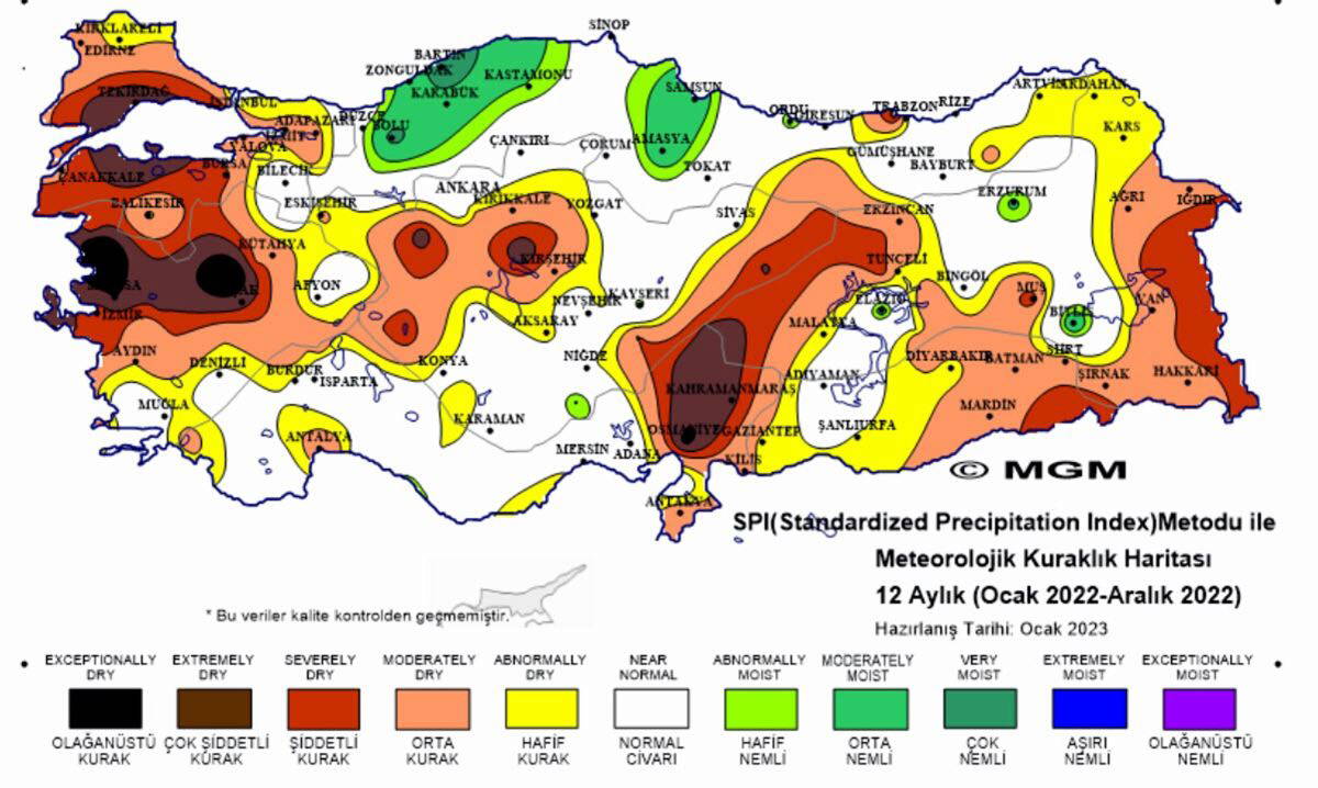 İzmir'de yağışlı gün sayısı ve metrekareye düşen yağmur miktarında düşüşlerin yaşandığını belirten Meteoroloji 2. Bölge Müdürlüğü yetkilileri, “İzmir Güzelyalı baz alınırsa, aralık ayı uzun yıllar ortalaması metrekareye 146,8 kilogram yağmur düşüyor. 2022 Aralık ayında ise yağmur miktarı metrekareye 101,3 kilogram olarak kaydedildi. Uzun yılların ortalamasına göre yaklaşık yüzde 31 yağış azalma var. Ocak ayının uzun yıllar ortalaması metrekareye 136,9 kilogram yağış. 23 Ocak'a kadar metrekareye 65,2 kilogram yağış kaydı var. Yağışlı gün sayısı bakıldığında, aralık ayı uzun yıllar ortalaması 13 gün yağışlı geçerken 2022 Aralık ayında 6-7 gün yağışlı geçti. Ocak ayında şu anda 4-5 gün yağışlı geçmiş” açıklamasında bulundu.