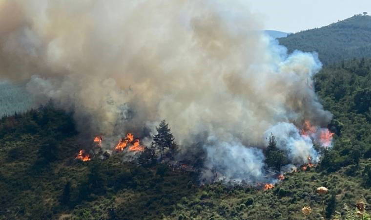 Ekipler, havadan ve karadan müdahaleyle yangını kontrol altına almaya çalışıyor.