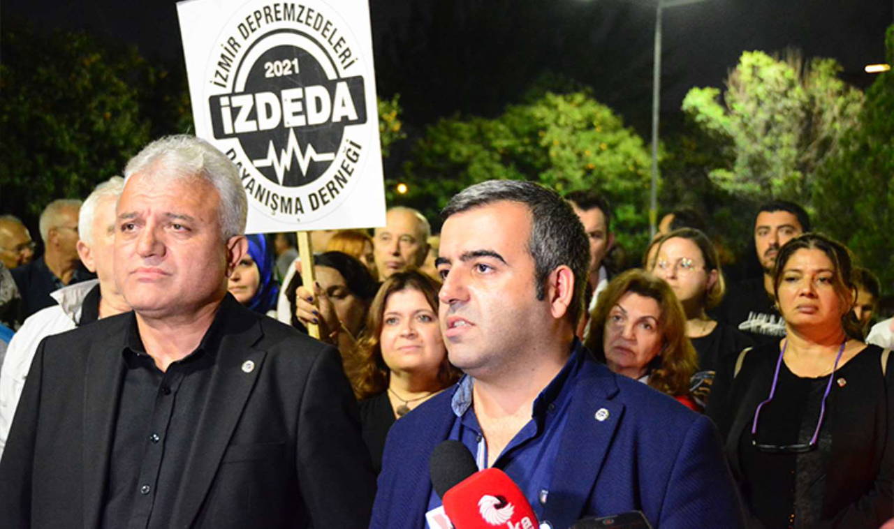 İzmirli depremzedelerini yok sayıldığını ifade ederek sözlerine başlayan İZDEDA kurucu başkanı Haydar Özkan ise “Bizi kentsel dönüşümcü gibi görmeyin. Üç yıl boyunca depremzede olduğumuza kimseyi inandıramadık. Hep kentsel dönüşümcü muamelesi gördük. 36 ayın sonucunda bir arpa boyu kadar yol alamamış durumdayız. Bizlere depremzede muamelesi yapın 6 Şubat depremzedelerine 5 Ekim 2023 tarihinde Cumhurbaşkanımızın onaylamış olduğu kararname esasına göre hibe ve destek kredisi şeklinde yardımlarla buradaki orta hasarlı ve az hasarlı depremzedelerimizi ayağa kaldıralım. Onları da konutlarına kavuşturalım. 36 ay bıçak kemiğe dayandı. Artık yeter” dedi.
