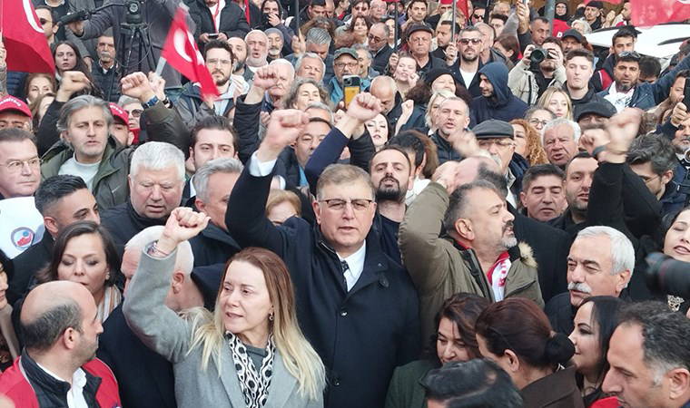 İzmir İl Başkanı Şenol Aslanoğlu, burada İzmirlilere seslenerek, “Korkmayan, sinmeyen, diz çökmeyen, başka bir Türkiye yok diye ayağa kalkan İzmirliler hoş geldiniz. İstanbul Belediye Başkanımız, CHP Cumhurbaşkanlığı Adayımız İmamoğlu ev arkadaşlarına yapılan akıl almaz hukuksuzluğa karşı Türkiye ayakta, direniyor” dedi.