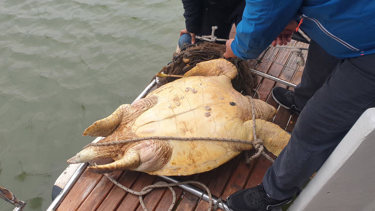 Ortaca Su Ürünleri Kooperatifi (ORSU) Başkanı Özay Akdoğan, İztuzu açıklarında ölü caretta caretta buldu. 80 santimetre boyunda, 42 kilo ağırlığındaki deniz kaplumbağası, kement haline getirilen halatla tekneye çıkarıldı.