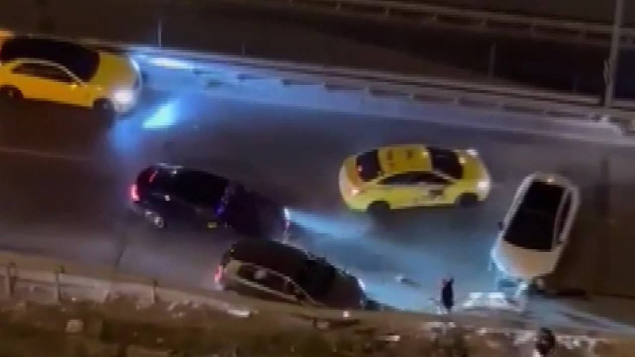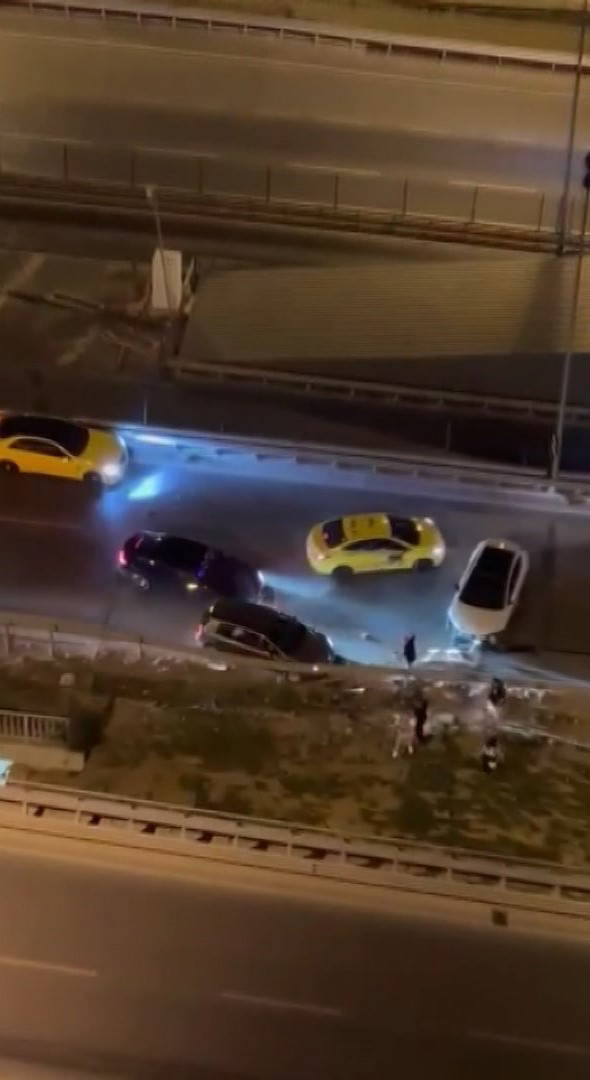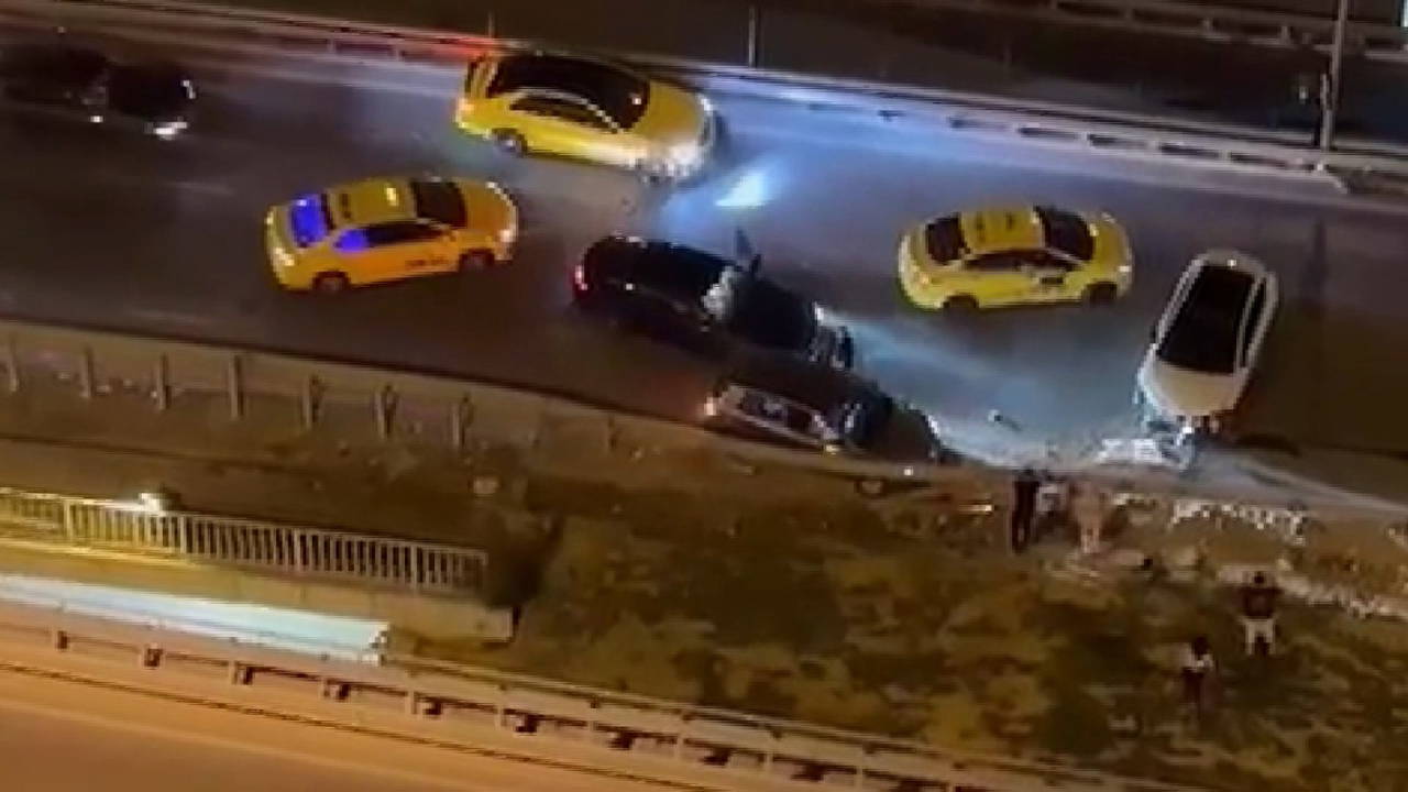 Arkadan gelen bir başka araç ise, taksiye bir kez daha çarparak savruldu; ardından da sağ şeritteki bir araca daha çarptı.