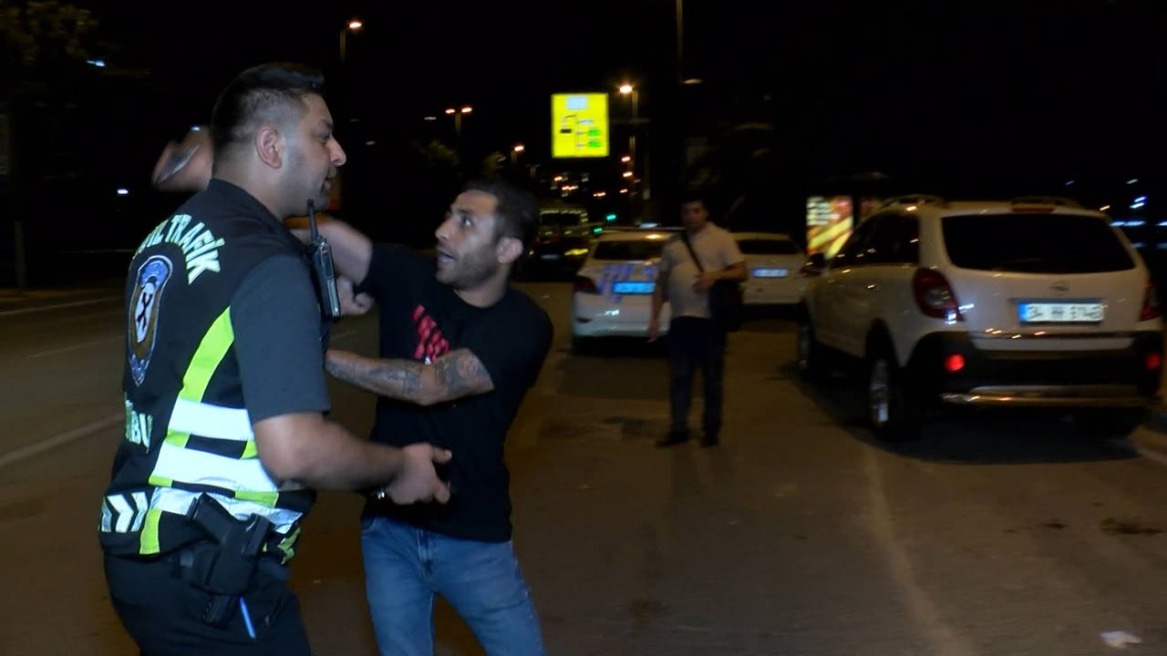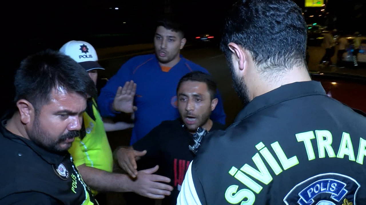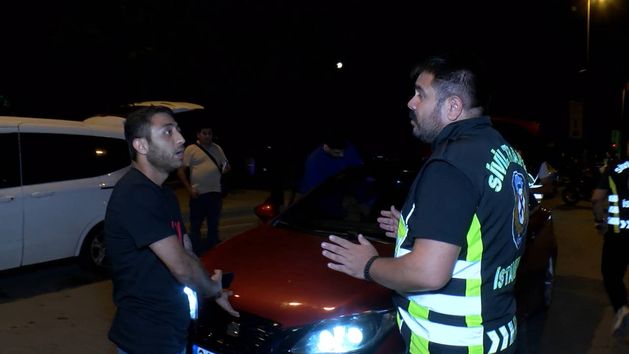 Denetimler sırasında emniyet kemeri takmadığı için çevrilen 34 FHA 405 plakalı otomobilin sürücüsü Ş. E., polis ekipleri ve basın mensuplarına tepki gösterdi.