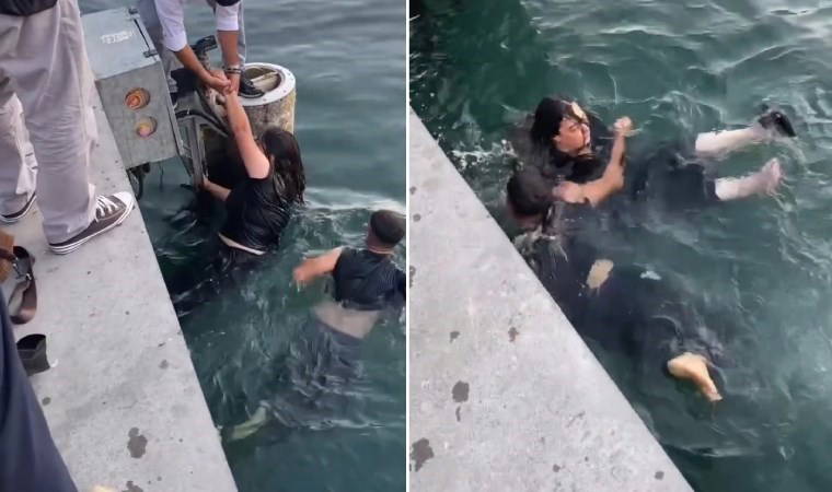 Denize düşen kadının sağlık durumunun iyi olduğu öğrenilirken, kadının yurttaşlar tarafından kurtarılma anı ise çevredeki bir yurttaşın cep telefonu kamerasına kaydedildi.