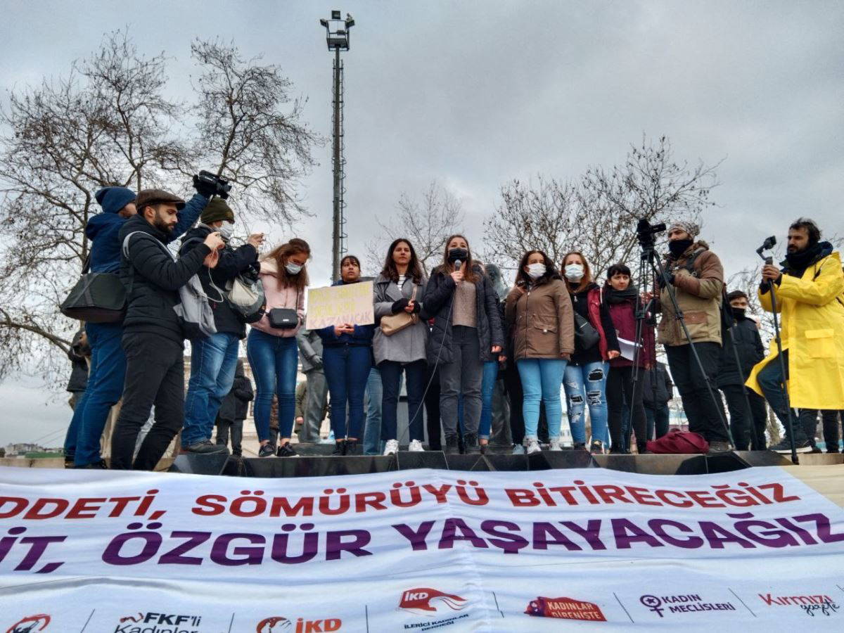 "Defalardır bu alanda eylemimizi yapıyoruz. Geçen sene çok muzaffer hissediyorduk kendimizi. Çünkü İstanbul Sözleşmesi’ne saldırıyı durdurduğumuz bir evredeydik. Belli olmaz bizim memlekette işler ama yine de muzafferdik. Sonra ne yaptılar? Tam da kadınların mücadele dolu bir döneminden sonraya denk getirerek bir gece yarısı darbesiyle neredeyse yine de tedirgin, gücümüzden korkarak İstanbul Sözleşmesi’nden imza çektiler. Danıştay Başsavcılığı da sözleşmeden imza çekme sürecinin hukuka aykırı olduğu görüşünü ortaya koydu. Haklılığımız bir kez daha kanıtlandı."