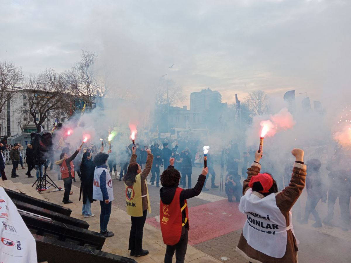 “Biz diyoruz ki eşit olacağız, İstanbul Sözleşmesi’ni uygulatacağız. Ama AKP iktidarı, karşımıza koruduğu failler çıkartıyor. Biz, bunu kabul etmiyoruz. Buradan da bir kez daha söylüyoruz: Kadın cinayetleri önlenebilir. Eşitsizlikle mücadele edebiliriz. Bunu örgütlü mücadelemizle yapacağız."