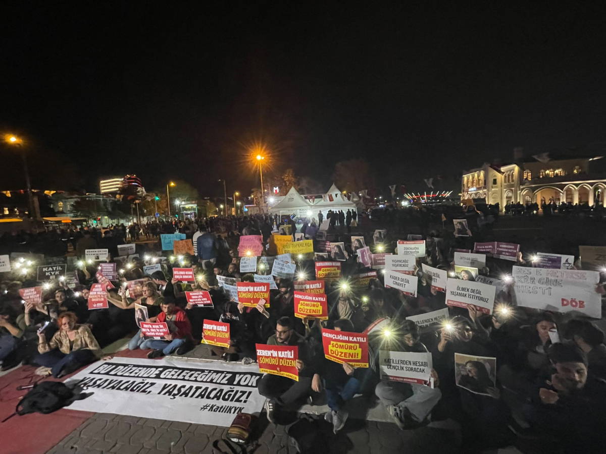 ‘Bu düzende geleceğimiz yok' diyerek toplanan yüzlerce üniversite öğrencisiyiz. Hepinizi bu düzenle mücadeleye davet ediyoruz. Gençler yaşama umudunu yitiriyor. Geçinemiyoruz, barınamıyoruz ihmaller sonucu ölüyoruz."