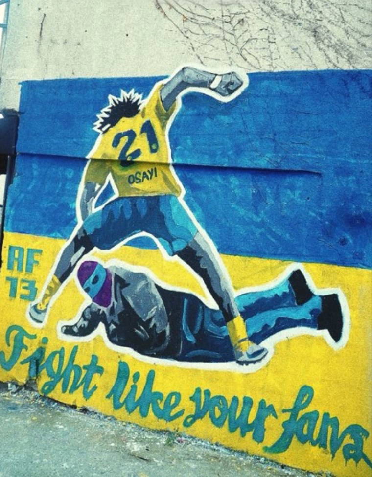 Bu anlardan birisinde, Fenerbahçeli oyuncu Osayi Samuel, sahaya giren ve kendilerine doğru saldıran taraftara, yerde yumruk atmaya çalıştı. Yaşananlardan sonra bazı sarı lacivertli taraftarlar, bu anın görüntüsünü Kadıköy’de bir duvara grafiti olarak yaptı.