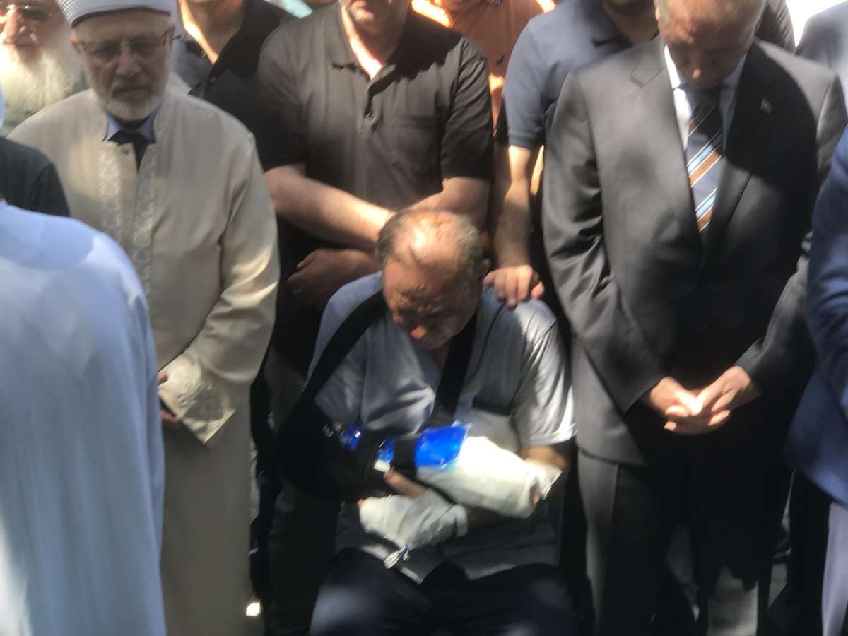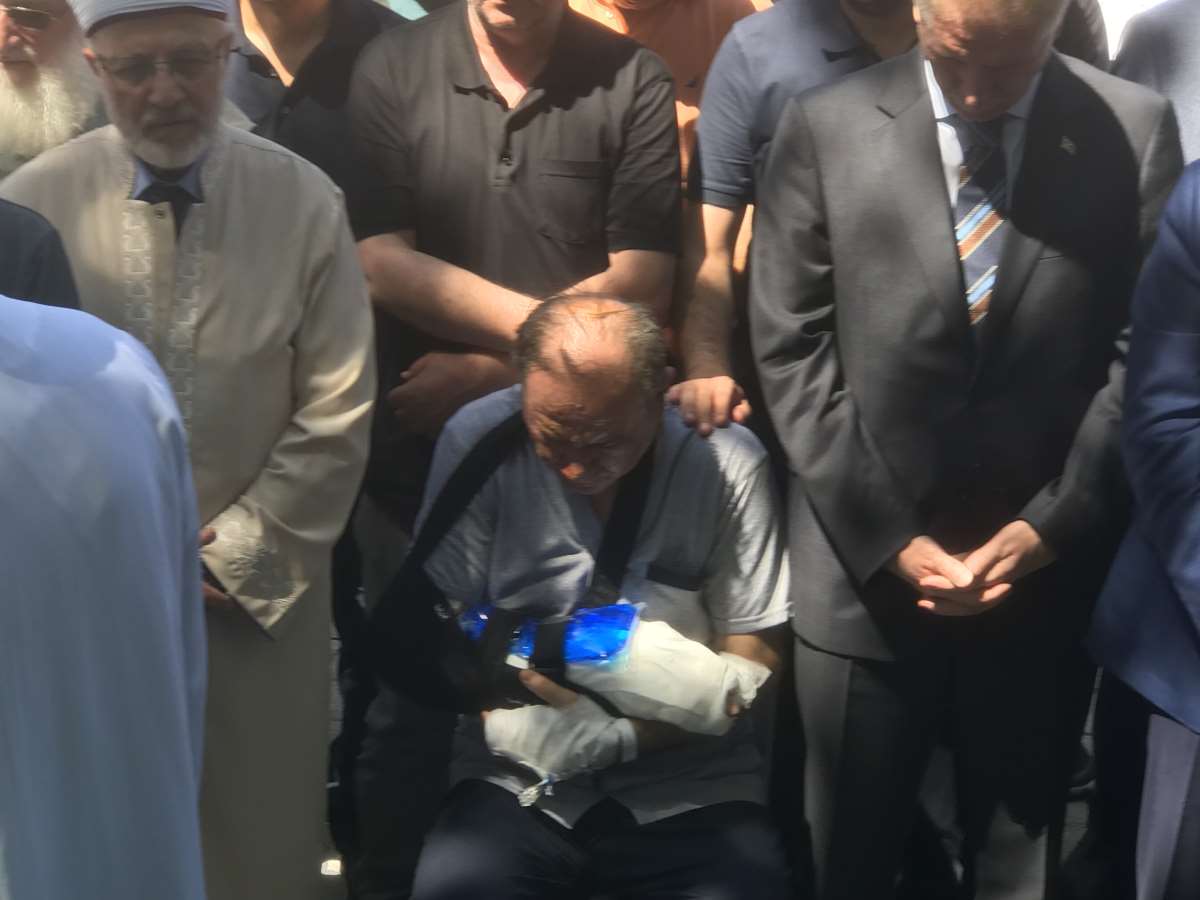 YARALI ŞEKİLDE CENAZE TÖRENİNE KATILDI