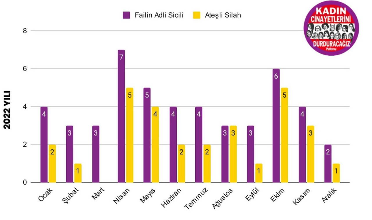 Kadın Cinayetlerini Durduracağız Platformu yayımladığı raporda, "Verilerimize göre bu yıl yaşanan kadın cinayetlerinden yüzde 14’ünde faillerin adli sicili kayıtlarının olduğunu görüyoruz. Bu oran geçen yıl ise yüzde 9’du. İktidarın ‘kadına yönelik şiddete sıfır tolerans’ sözünün ne kadar altı boş bir vaatten ibaret olduğu apaçık ortada" diyor.