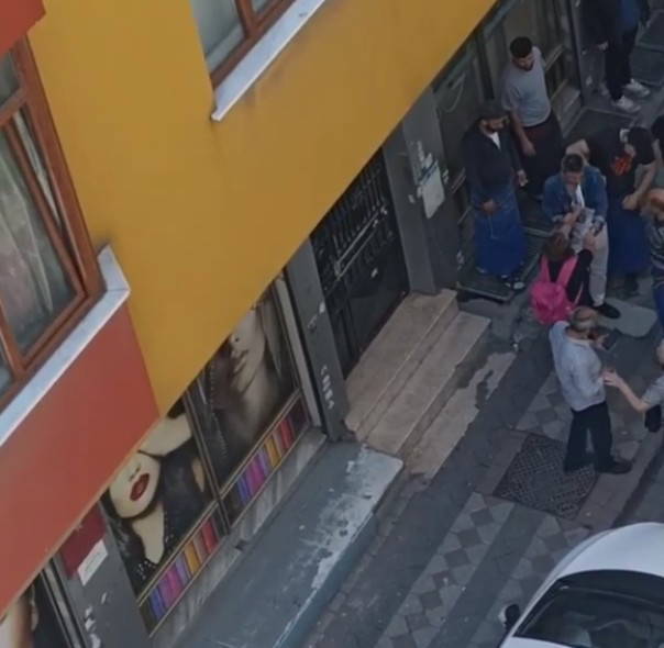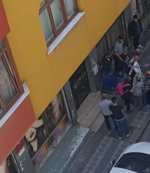 Kadının, yardım çığlıklarını ve 'Polis çağırın' bağırışlarını duyan pazarcı esnafı, durumu polise bildirerek yardıma koştu. Araya giren esnaf, erkeğe müdahalede bulundu. Bu sırada kadının, polis gelene kadar kaçmasın diye erkeğin yakasından tuttuğu görüldü.