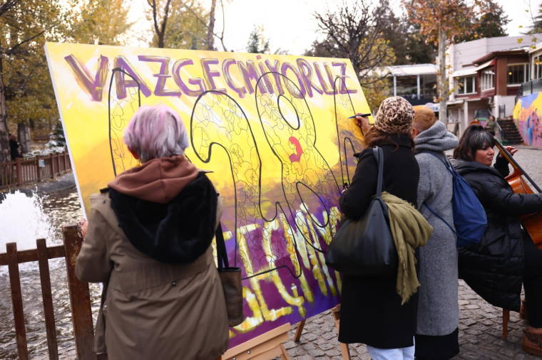 Kuğulu Park’ta da 25 Kasım’da, 6284 olarak bilinen “Ailenin Korunması ve Kadına Karşı Şiddetin Önlenmesine Dair Kanun” isimli yasanın uygulanmasına dikkat çekmek amacıyla farkındalık etkinliği düzenlendi. Kadınlar, “Vazgeçmiyoruz” yazılı tuval üzerinde kadın portrelerinden oluşan “6284” rakamlarını boyadı.