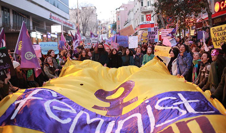 Açıklamanın devamında ise şu ifadelere yer verildi: "Bizler ise susmuyoruz. Özgürlüğün kadınların dayanışmasıyla, yan yana direnmesiyle mümkün olduğunu feminizmden öğrendik. İstanbul’da 40 sene önce feministler “İsyanı var bizde haksız yüzyılların. Özlemi var bizde geniş hayatların” diyerek sokaklara çıktı. Biz bu geniş hayatlara sahip çıkıyoruz, haksız yüzyılların hesabını soruyoruz. Patriyarkanın adını koyuyoruz, faillerini, destekçilerini işaret ediyoruz. Erkek şiddetini önlemeyip “kadınlar faillere kapıyı açıyor” diyenlere karşı, bizi bakım emeği ve yoksulluğa mahkum etmeye, eşitlik politikaları yerine aileyi güçlendirme adı altında kadınları sindirmeye karşı, homofobi ve transfobiyi norm haline getirmeye çalışanlara, seçtiklerimize kayyum atayarak irademizi yok sayanlara karşı, eylemlerimize, fikirlerimize, birlikteliğimize müdahale eden, gözdağı veren, şiddet uygulayanlara karşı yaşasın feminist mücadelemiz. Feminist mücadelemiz hayatlarımızı ve dünyayı değiştiriyor. Eşit ve özgür bir dünya kurmadan bitmeyecek bu isyan!"