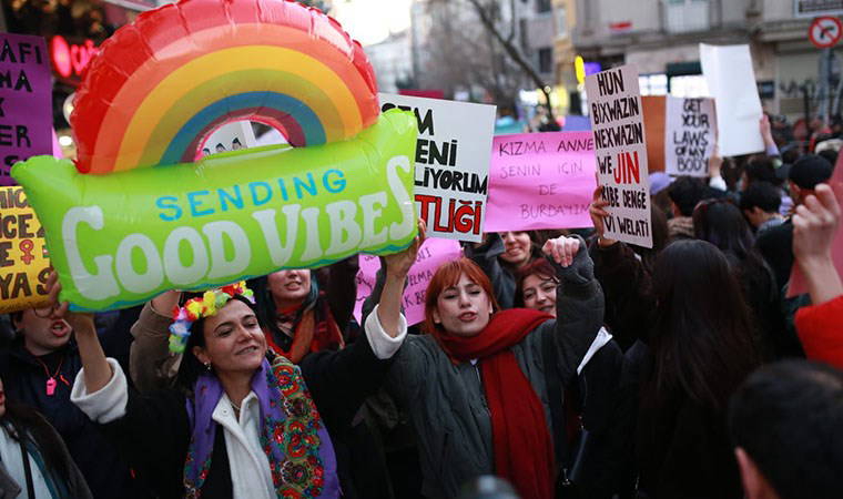 Sıraselviler caddesinde toplanan kadınlar, "Asla yalnız yürümeyeceksin" ve "sokaklar bizim" sloganlarıyla yürümeye başladı. Eylemin ardından bir grubun ablukaya alındığı ve gözaltıların olduğu öğrenildi.