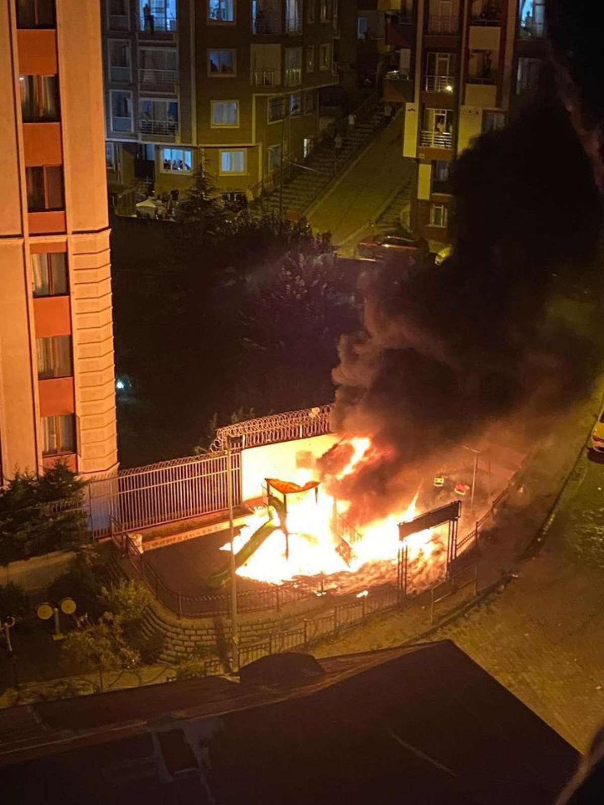 Polis ekipleri de çevrede önlem aldı. Yangın sırasında çocuk parkında hasar meydana geldi.