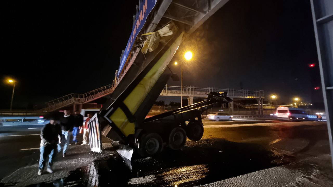 Öte yandan, saatin geç olmasıyla yaya üst geçidinde kimsenin olmaması olası bir facianın önüne geçti. Polisin kazayla ilgili incelemesi devam ediyor.