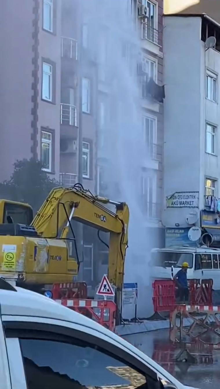 Tazyikli suyun bina boyuna ulaştığı anlar ise çevredekilerin cep telefonu kamerasına yansıdı. İSKİ ekibinin tamir çalışması başlattığı öğrenildi.