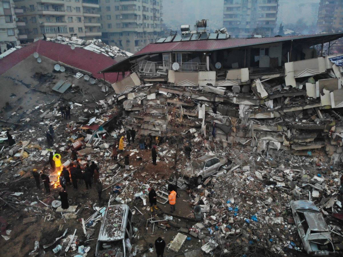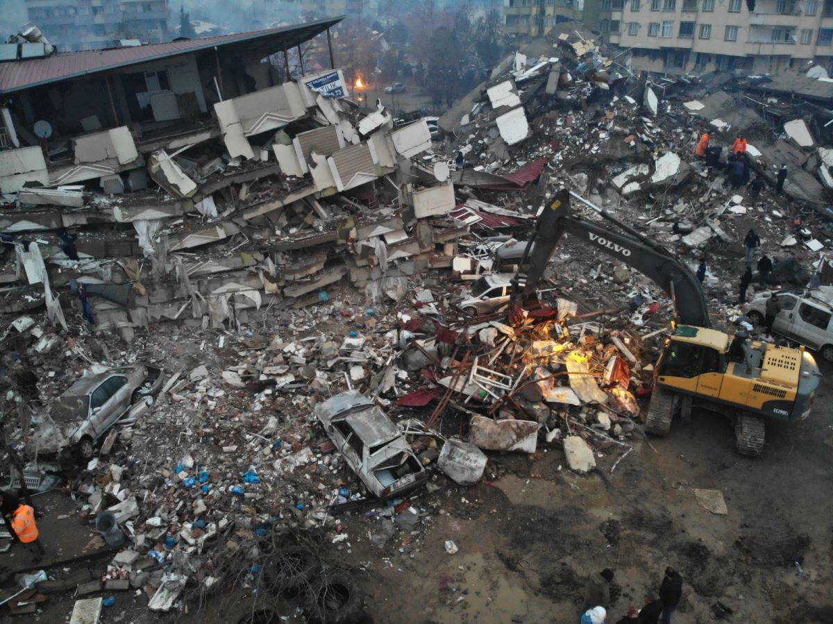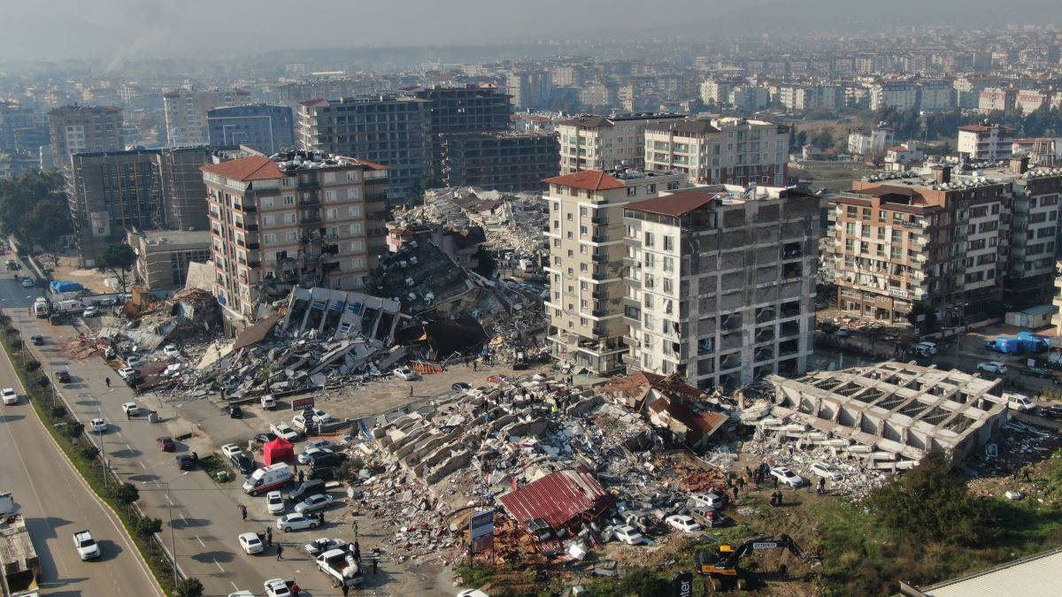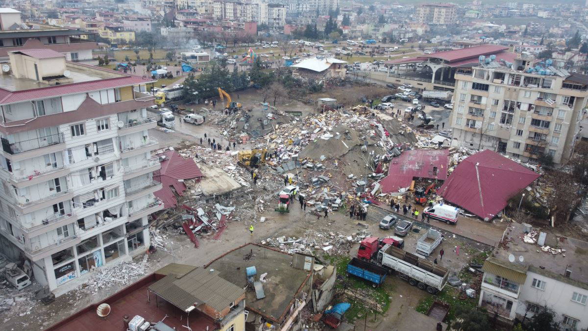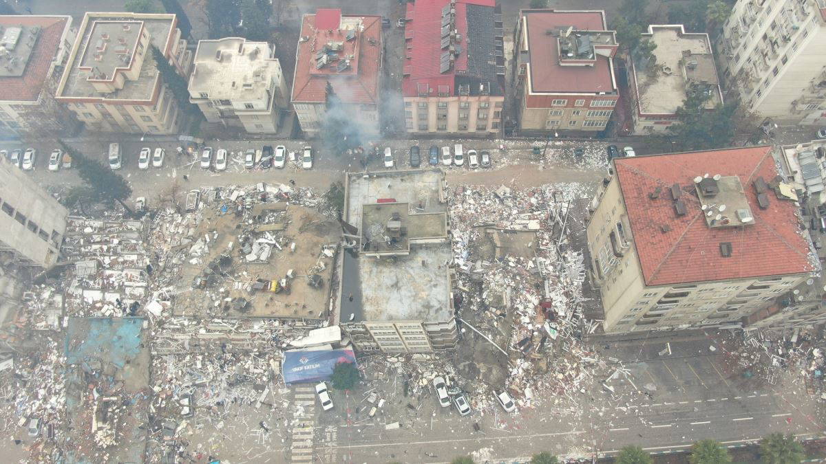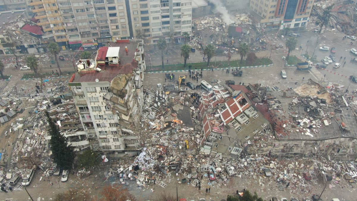 Kahramanmaraş'ta dün (6 Şubat 2023) meydana gelen ve 10 ilde yıkıma neden olan deprem havadan drone ile görüntülendi.