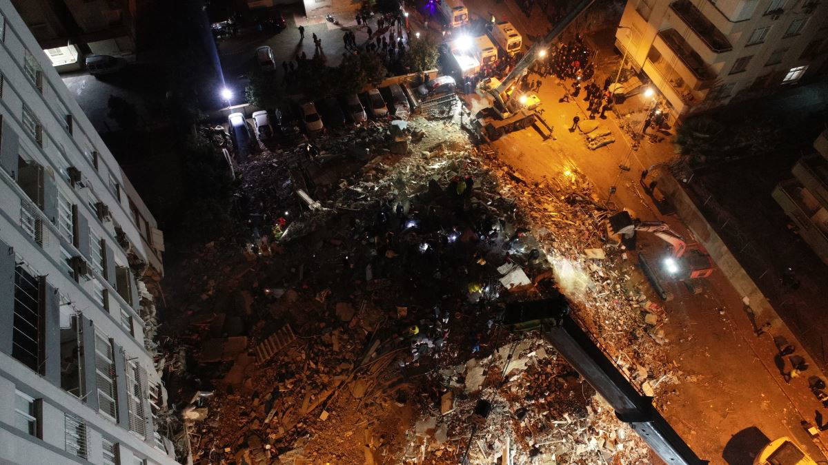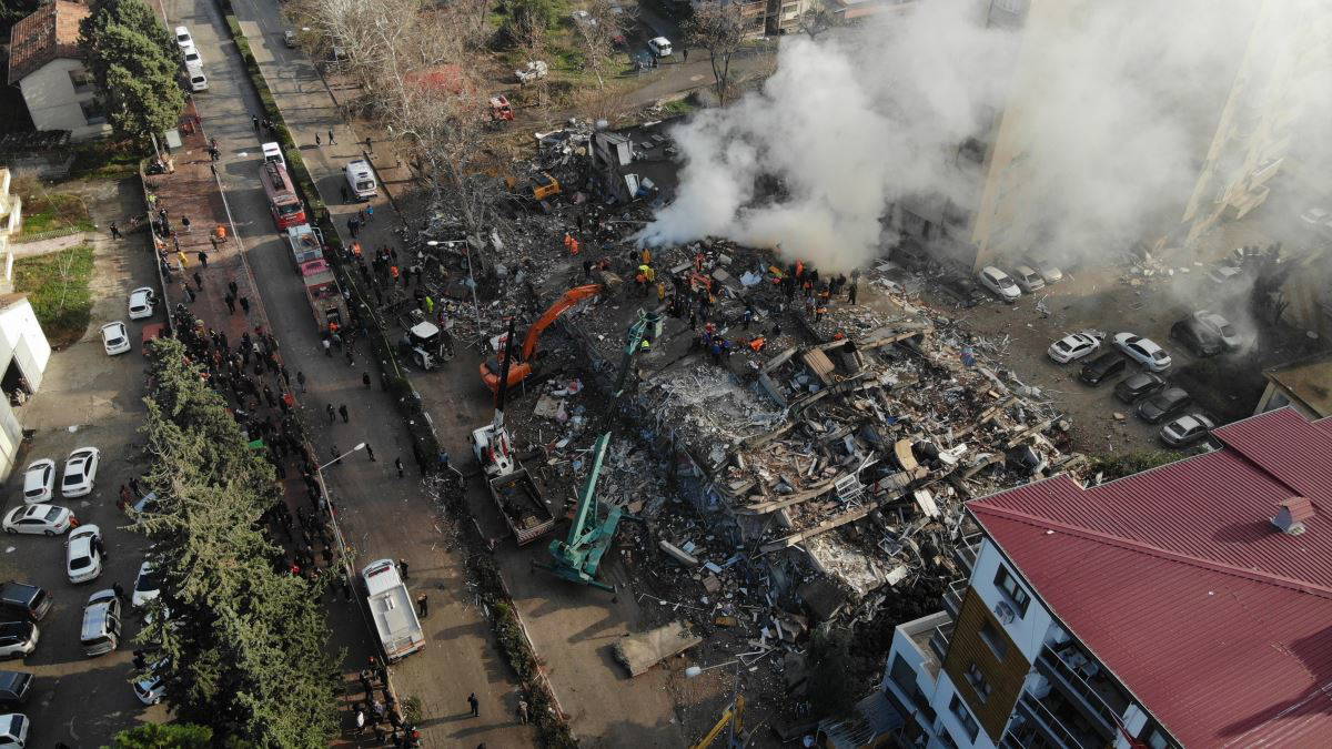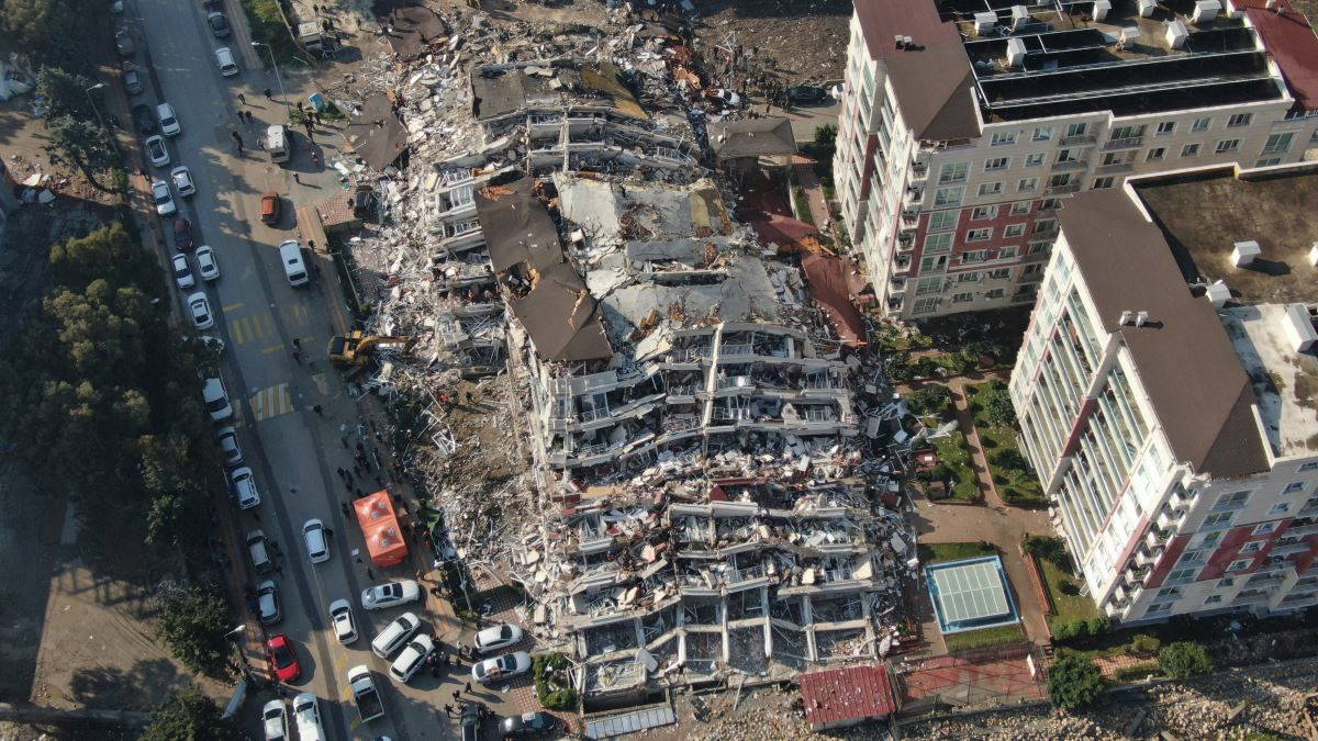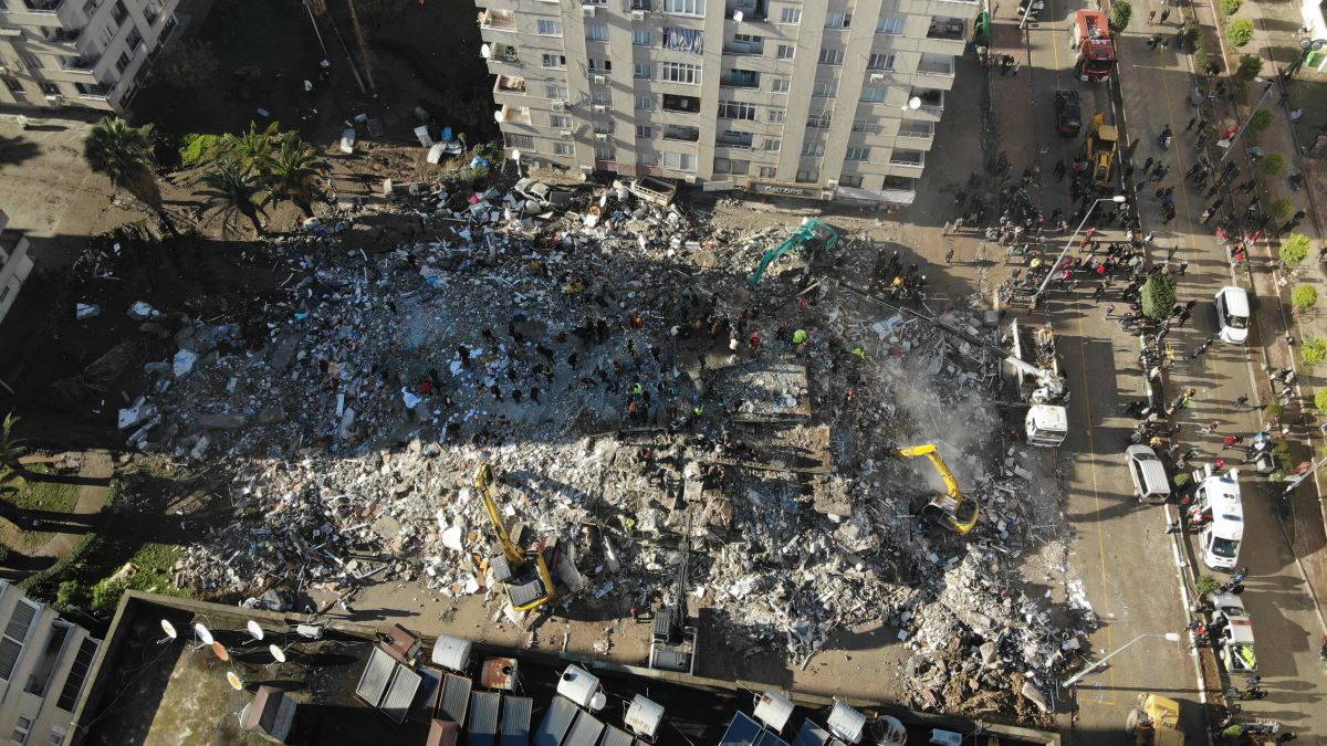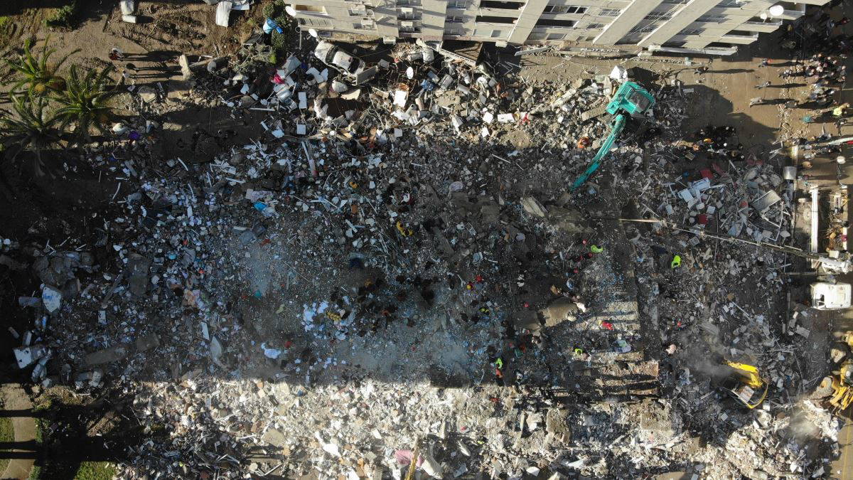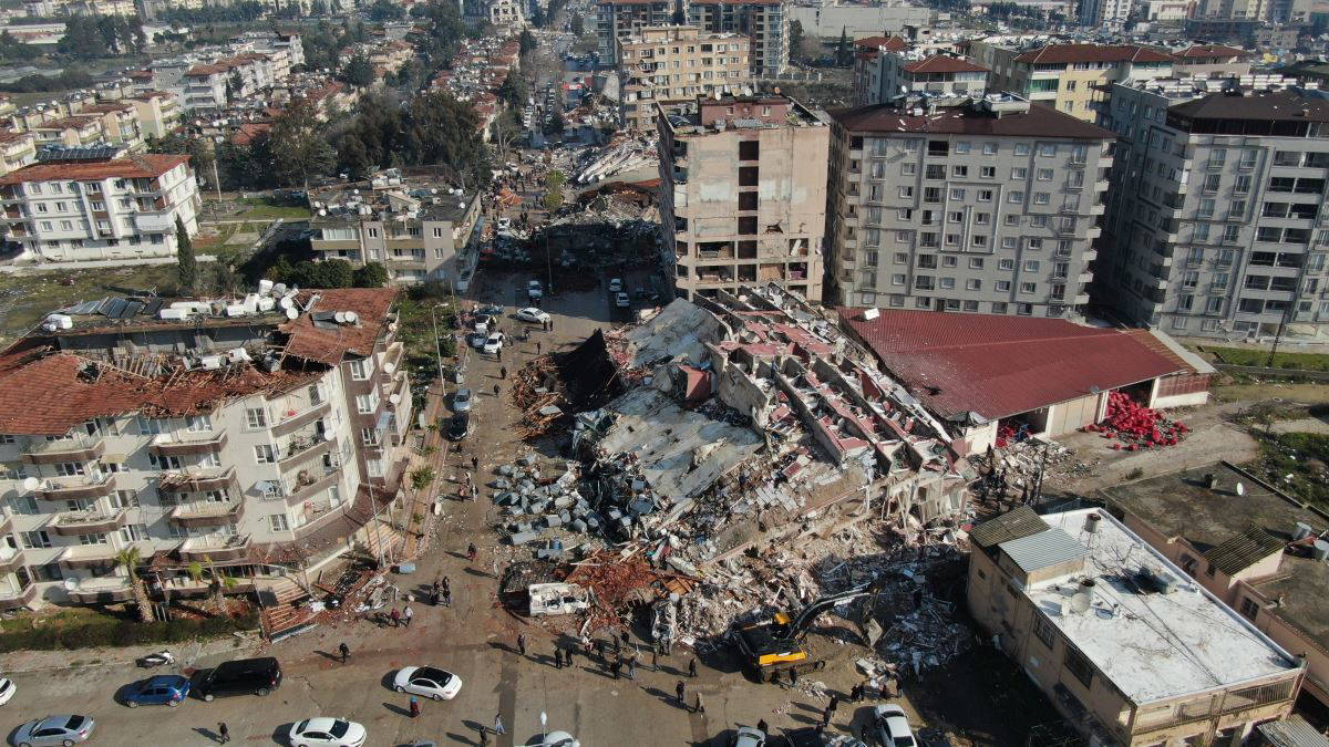 Adana'da depremde yıkılan 13 katlı apartmandaki arama-kurtarma çalışmaları drone ile görüntülendi.