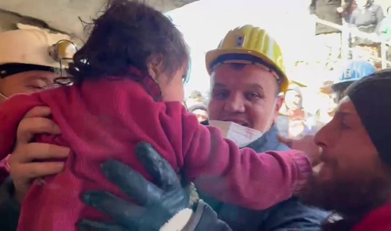 5 yaşındaki Sidra, depremden 35 saat sonra maden işçileri tarafından enkaz altından sağ çıkarıldı. O anları görüntüleyen ekipler büyük sevinç yaşadı. Babasına teslim edilen küçük kızın yaşadığı şok ise yüzüne yansıdı.