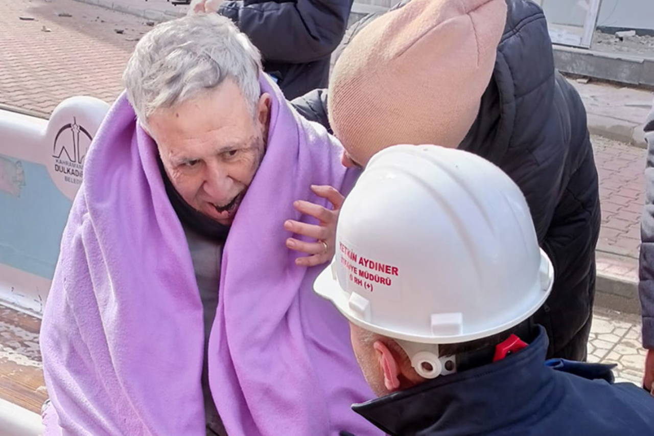 Depremler nedeniyle Kahramanmaraş'a giden Merzifon Belediyesi itfaiye ekipleri, Trabzon Caddesi'nde bir apartmanın enkazından yaşlı bir adamı sağ çıkardı.