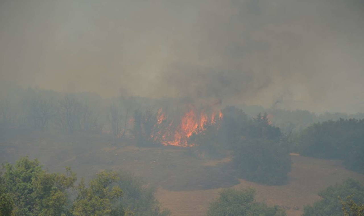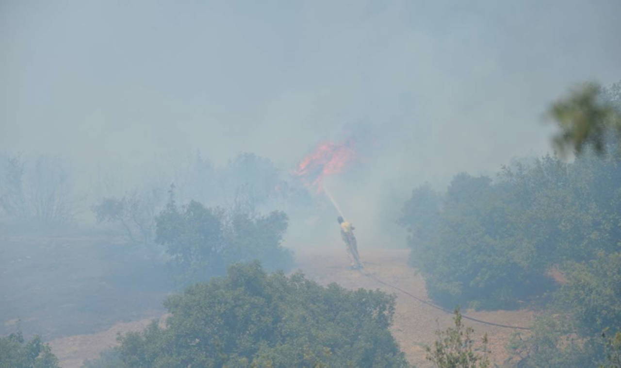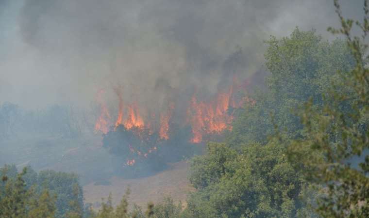 Kahramanmaraş'ın Dulkadiroğlu ilçesi Erkenez Mahallesi kırsalında yangını görenler durumu yetkililere bildirdi. Bölgeye iki helikopter ile arazözler sevk edildi.