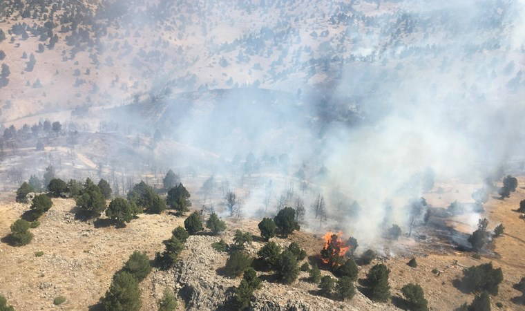 Kahramanmaraş'ın Nurhak ile Çağlayancerit sınır bölgesindeki Umutlu Mahallesi'ndeki ormanlık alanda, henüz belirlenemeyen nedenle yangın çıktı.