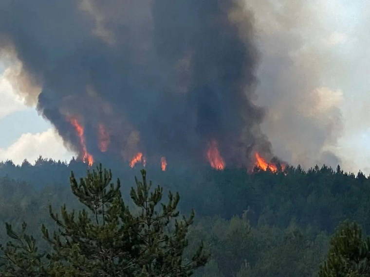 Ormanlık alandan gökyüzüne yükselen dumanlar çevredeki yerleşim yerlerinden rahatlıkla görülürken, yangın bölgesinde sıcak hava ve rüzgarın etkili olduğu öğrenildi.