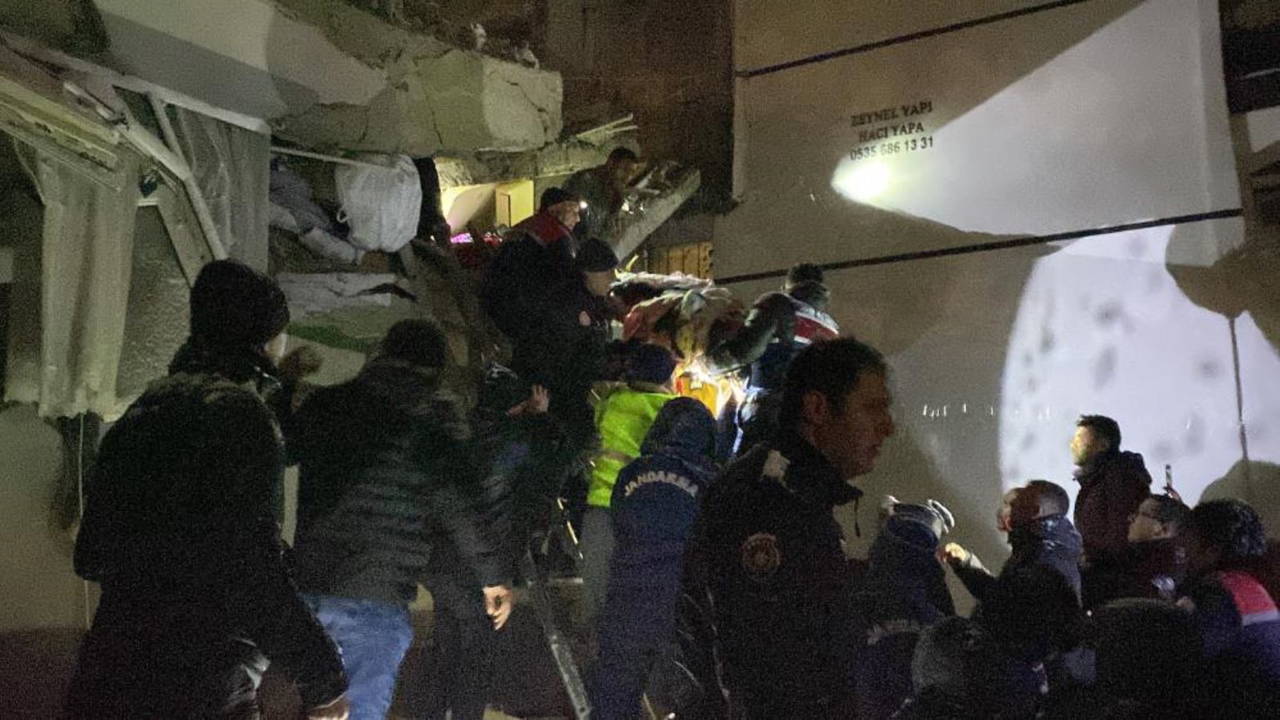 Enkazdan bir kişi sağ çıkartılıp hastaneye kaldırıldı.