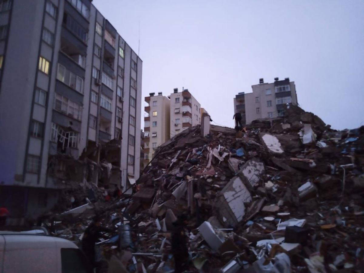 Sabaha karşı meydana gelen depremde Çukurova ilçesine bağlı Huzurevleri Mahallesinde 14 katlı 3 bloklu sitenin bir bloğu tamamen çöktü. Diğer bloklara ise hiçbir şey olmadı.