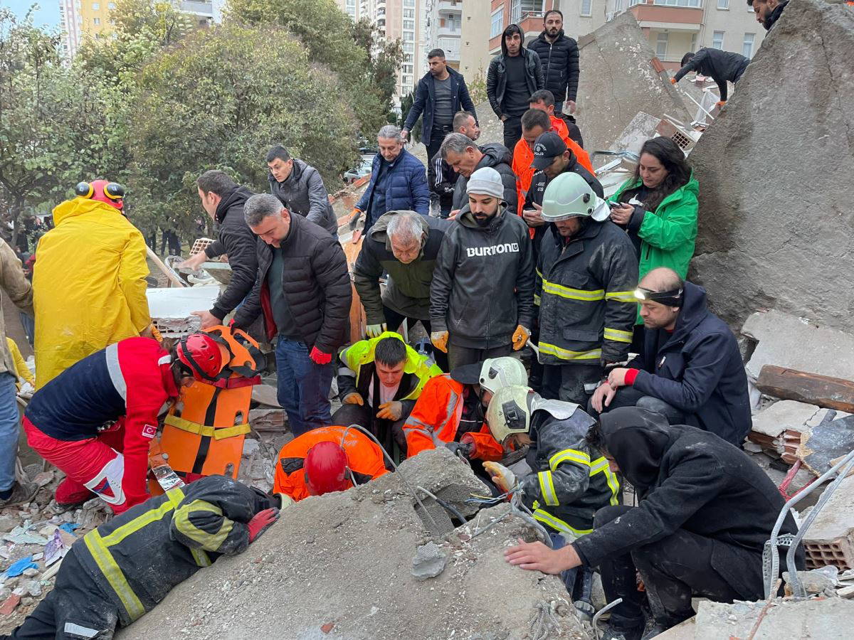 "15 bina kağıt gibi yıkılmış, geceden beri çalışıyoruz. Şu ana kadar 10 yurttaşımız hayatını kaybetti. 90 üzerinde yaralı çıkardık. Çalışmalar sürüyor. Şiddetli bir deprem yaşadık. Tüm ülkemize, halkımıza geçmiş olsun."