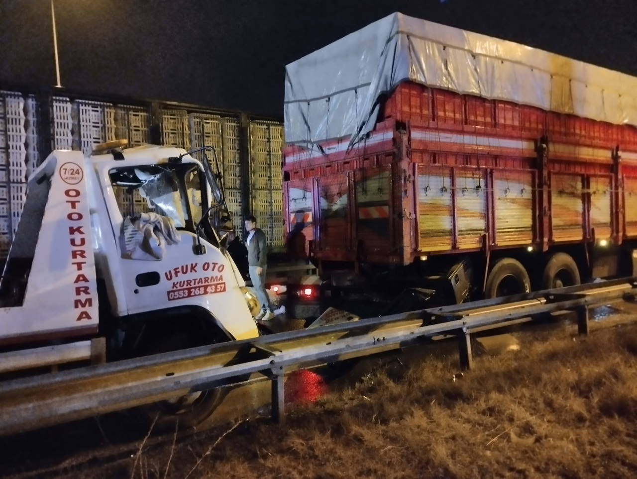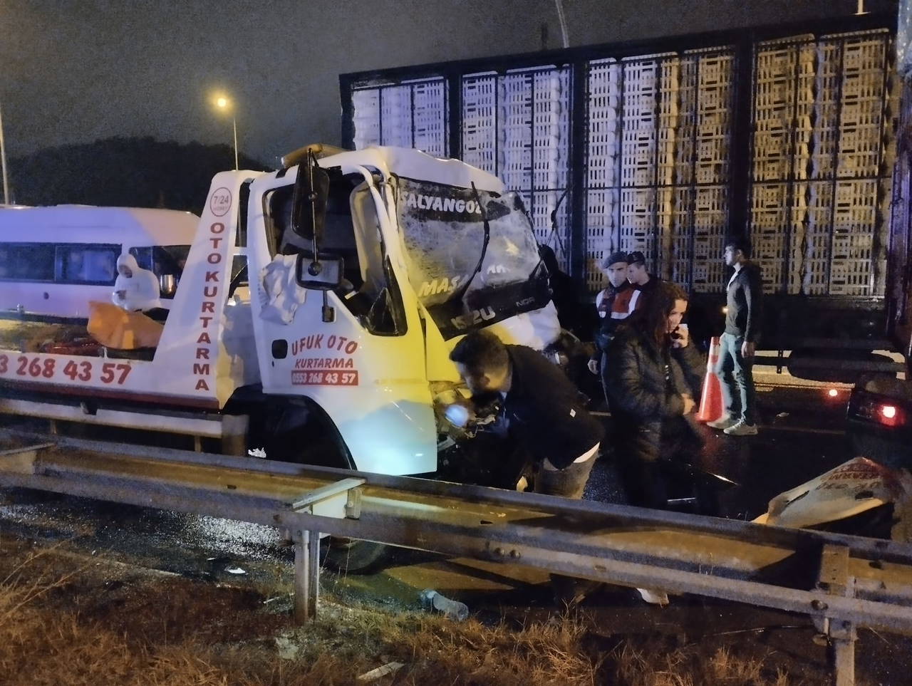 Kazada araçta sıkışan çekici sürücüsü Ufuk Öner, itfaiye ekiplerinin müdahalesiyle çıkarılarak sağlık görevlilerine teslim edildi. İlk müdahalesi olay yerinde yapılan Öner, ambulansla sevk edildiği hastanede tedaviye alındı.