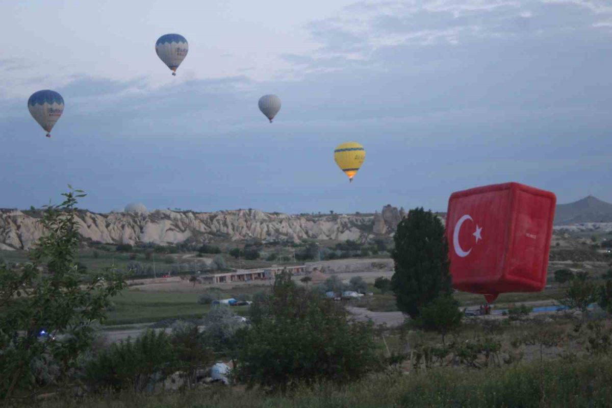 Sıcak hava balon pilotu Bekir Güneş ise yaptığı açıklamada, "Kapadokya’mızın vazgeçilmezi sıcak hava balonları ile bu güzel anlamlı günde Türk bayrağımız ile uçuyor olmak bizi onurlandırdı. Kapadokya’ya gelen yerli ve yabancı misafirlerimize ayrı bir görüntü sunacağımızı umut ediyorum” dedi.
