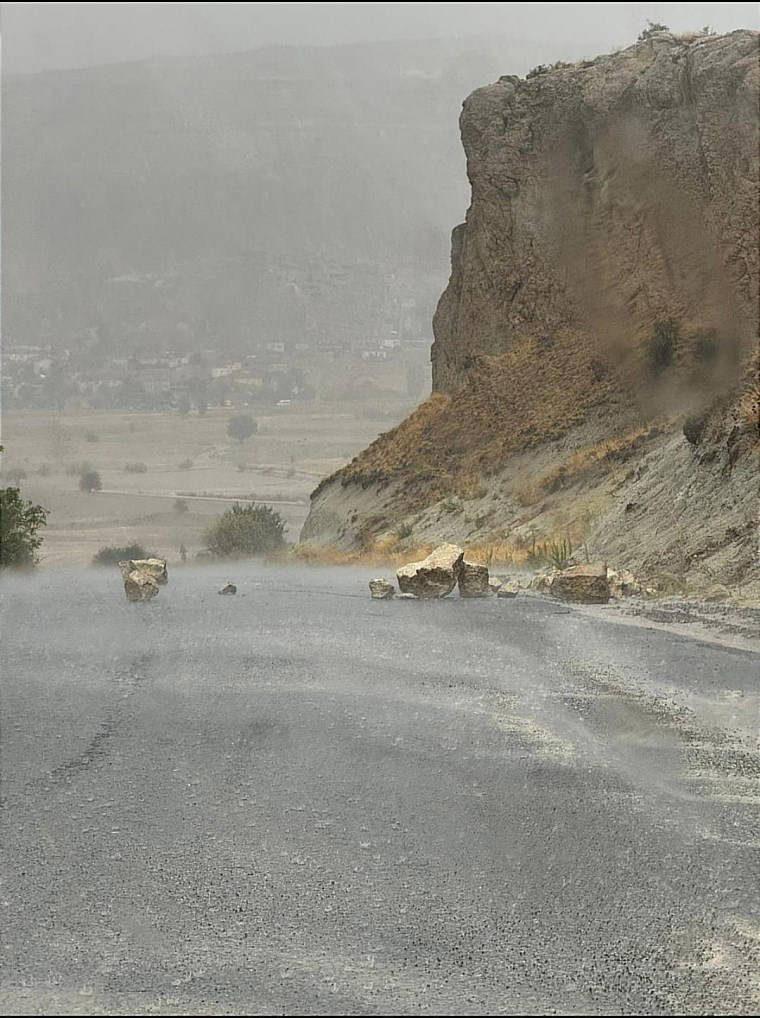 Ayrıca, kopan kaya parçaları da yolları kapattı. Ekiplerin bölgedeki çalışması sürüyor.