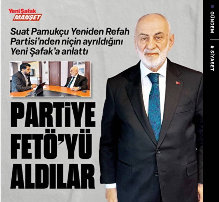 “Mahalli seçimlerle ilgili aday tespitlerinde de partimizin temel görüşü yerine oy hesabı yapıldığını ve inancımızla uyumlu olmayan adayların gösterildiğini görmek beklentimizin boşuna olduğunu göstermiştir” sözleriyle 20 Şubat’ta Yeniden Refah’tan istifa ettiğini duyuran ve AKP’ye katılan Suat Pamukçu’yla yapılan röportajda, YRP’de FETÖ mensuplarının bulunduğu iddia edildi.
